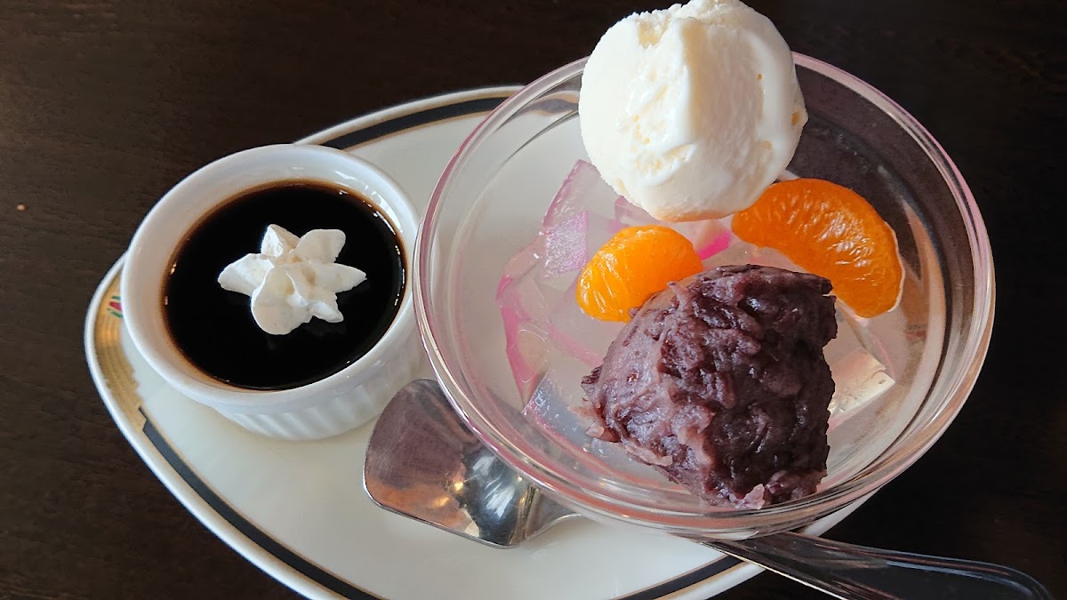 Then there’s the delightful treat you’ll find after 2:00 PM, where purchasing any drink allows you to enjoy one of ten exquisite desserts completely free. Deserving special mention are their Warabi-mochi (Japanese rice cake) and the sumptuous cream anmitsu (Japanese sweet dish). Diners repeatedly express that the quality of these desserts—is well worth the visit alone. As the sun sets, Green House transforms into a lovely tea spot where just a drink can bring you delightful sweets, all under ¥1,000.